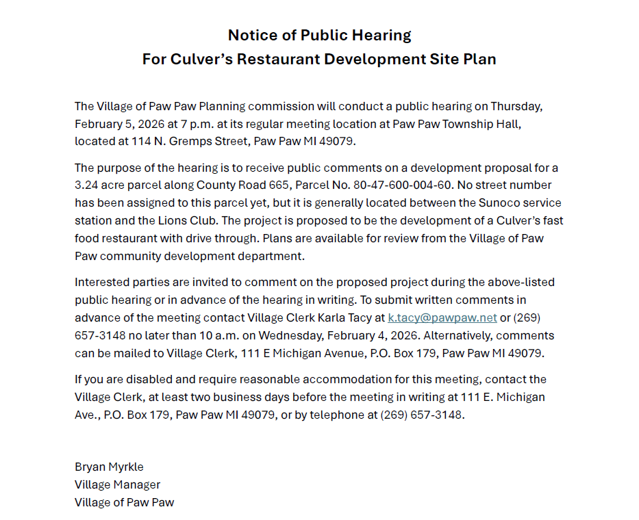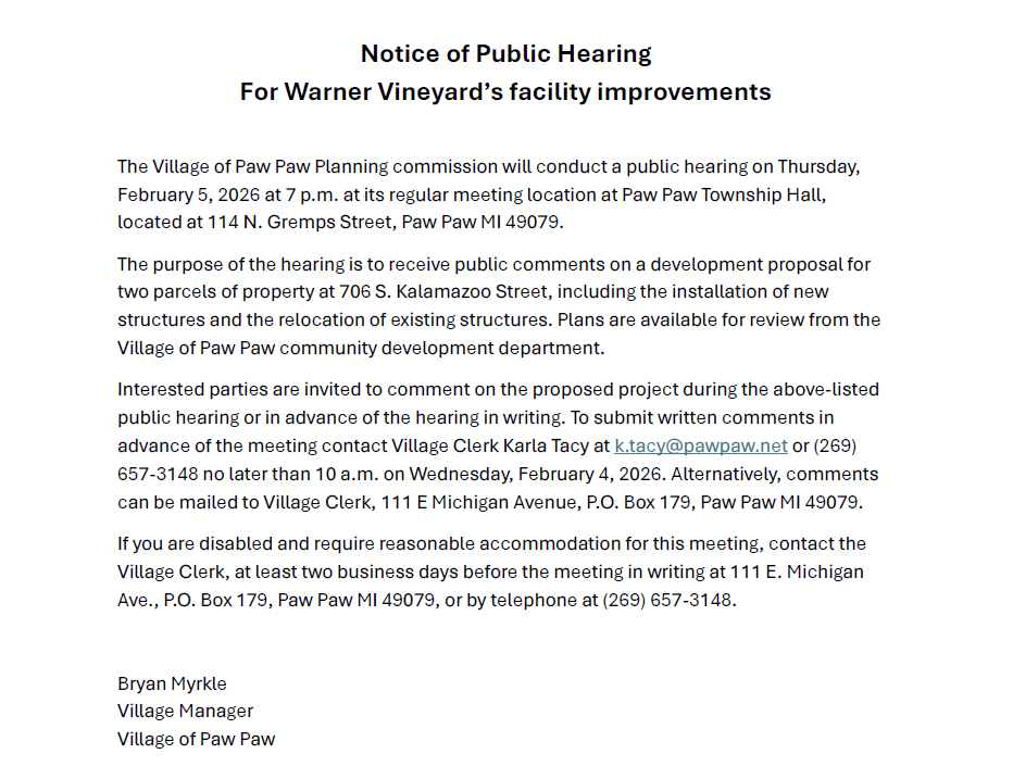 Welcome to the website of the Village of Paw Paw